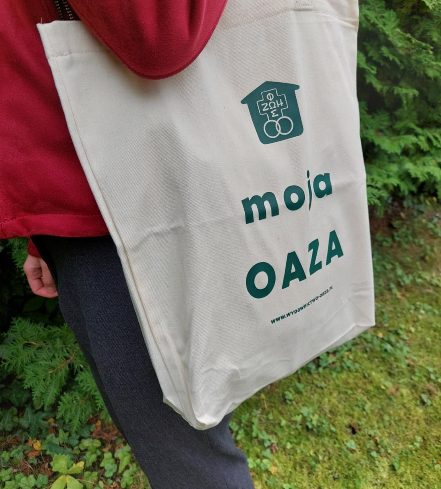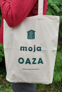 Wysokiej jakości, z grubej bawełny torba ze znakiem Domowego Kościoła i tekstem MOJA OAZA.