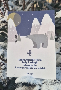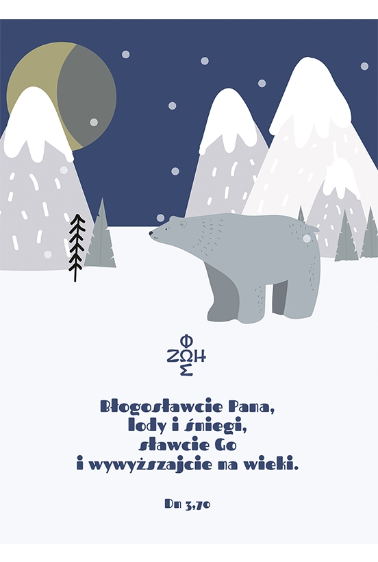 Dobry pomysł na upominek w zimowym sezonie - urocza kartka pocztowa ze znakiem ΦΩΣ-ΖΩΗ i fragmentem tekstu z księgi Daniela: